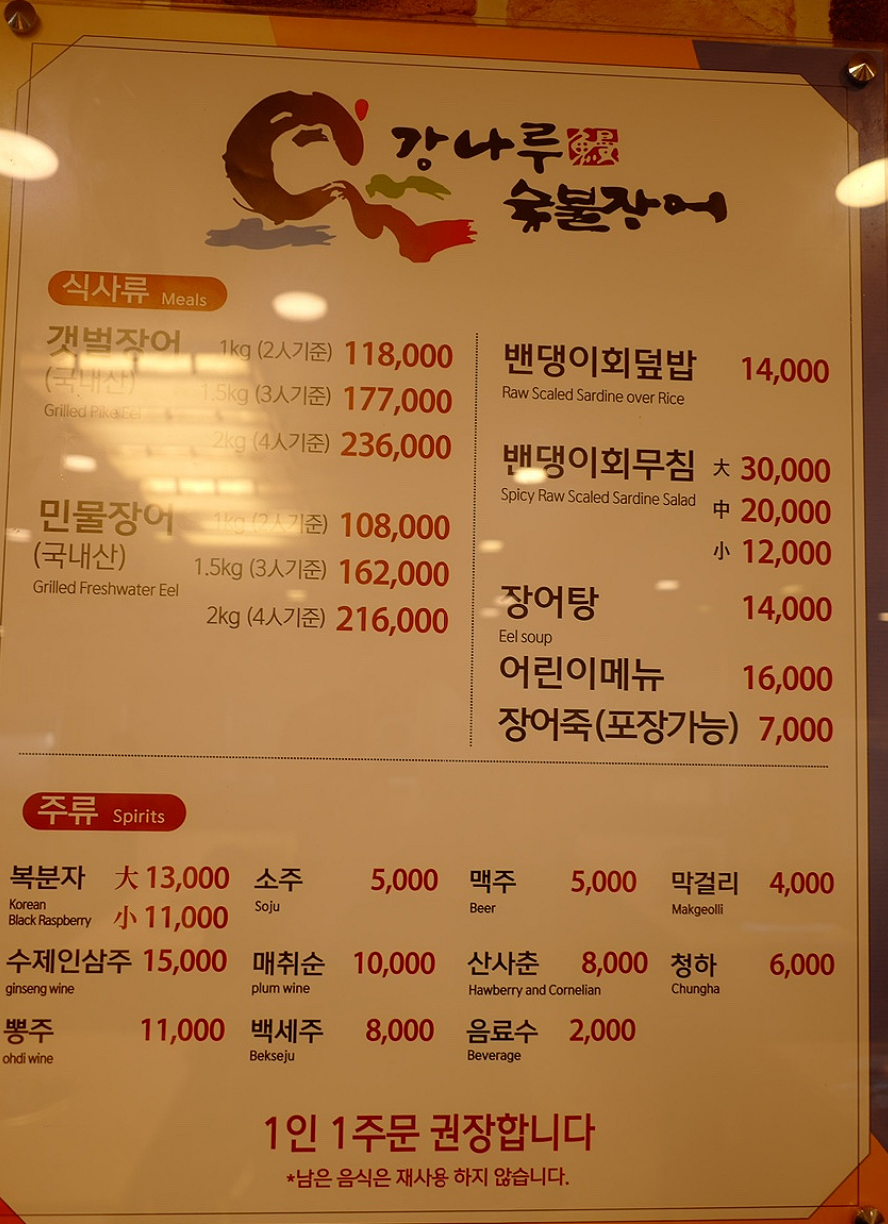 강화도의 유명 민물장어 전문점