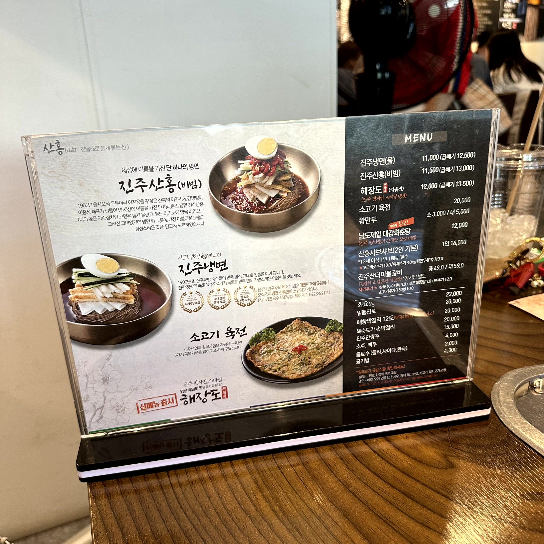 맛 4.30/6 가성비 1.30/2 서비스&청결 1.00/2냉면의 도시라고 해도 과언이 아닌 진주. 냉면집이 많다 보니 각 집마다의 개성을 살리려고 노력하는 모습이다. 그중 여러 지점이 있는 산홍은 20년 경력의 진주교방음식을 연구한 셰프님이 운영하신다.