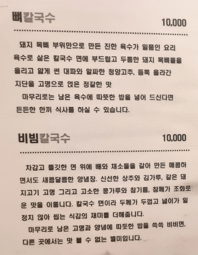 맛과 비주얼 다 잡은 뼈칼국수와 비빔칼국수