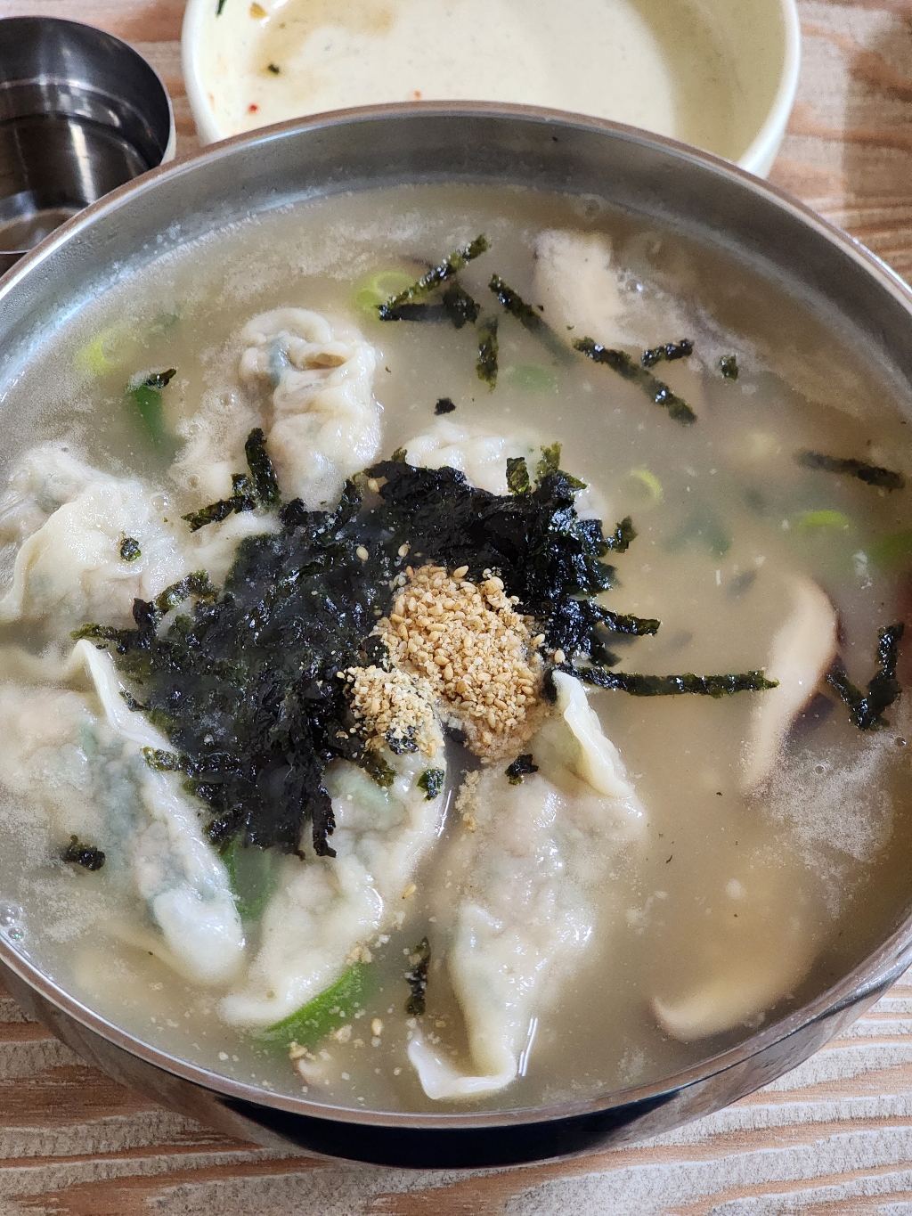 아침 해장으로 좋은 칼칼한 장칼국수와 직접 빚는 만둣국이 있다.