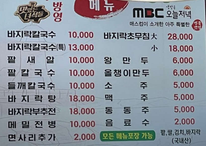 바지락 폭탄 칼국수가 유명한 집