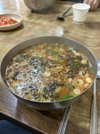 받자마자 국물 마시면 술이 땡기는 칼칼한 맛.