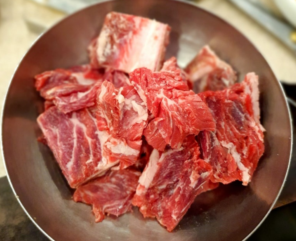 양념하지 않은 생갈비를 숯불에 구워먹으며 고기의 질이 좋은 편이다.