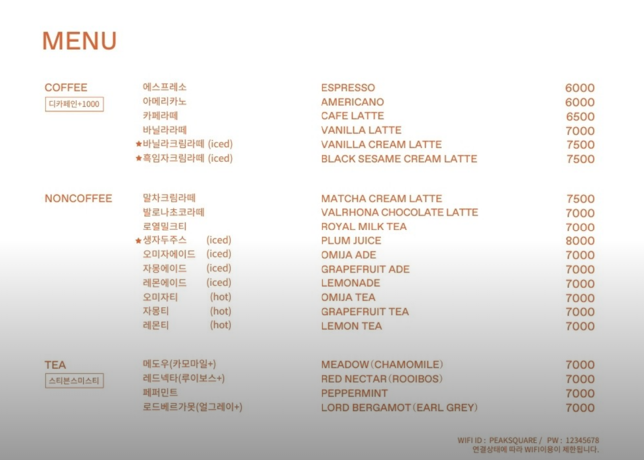메뉴정보